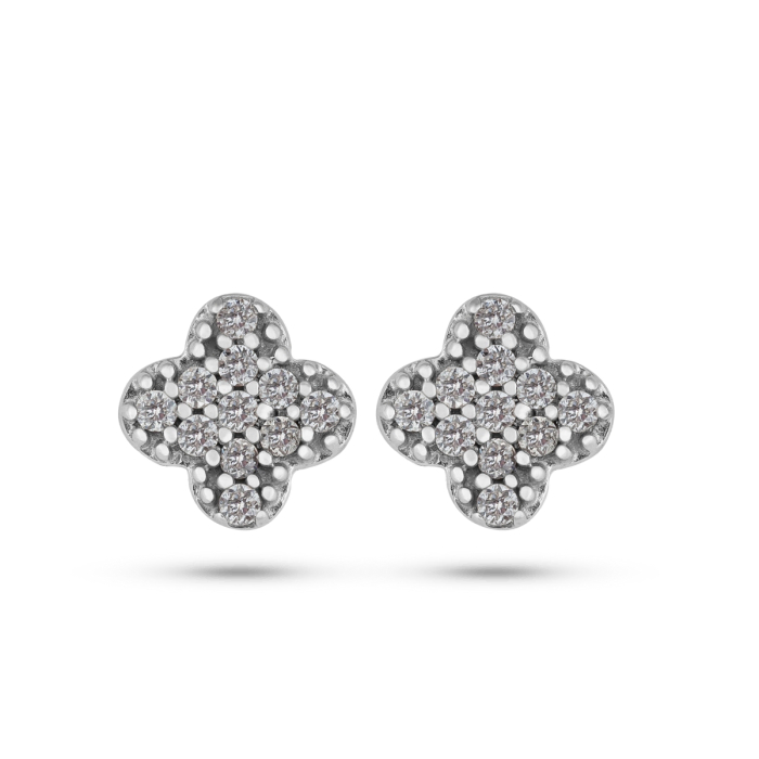 Brinco Pavé em Ouro Branco 18k com Diamantes Trevo