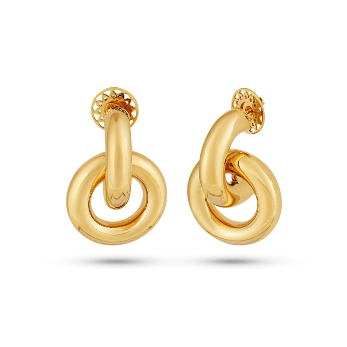 Este par de argolas em Ouro Amarelo 18K combina estilo e sofisticação, ideal para diversas ocasiões e estilos.