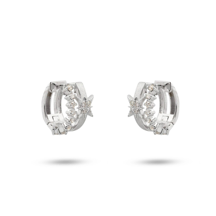 Brinco Argola Dupla Ouro Branco 18k com Diamantes 0,85ct