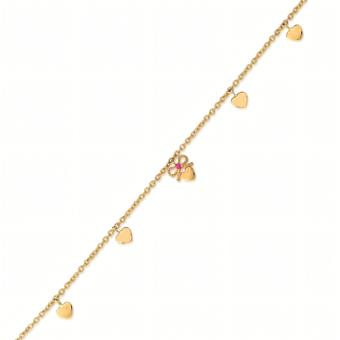 Pulseira Infantil Coração com Rubi em Ouro Amarelo 18K