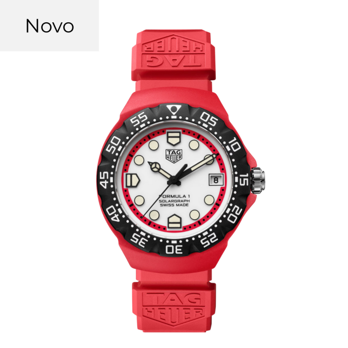 O TAG Heuer Formula 1 Solargraph (38 mm) proporciona um visual ousado e atraente com sua caixa em TH-Polylight vermelho. Pensado para aventureiros urbanos, combina cores vibrantes com tecnologia de quartzo solar Calibre TH50-00, que capta a energia da luz natural e artificial para garantir alta autonomia no dia a dia.