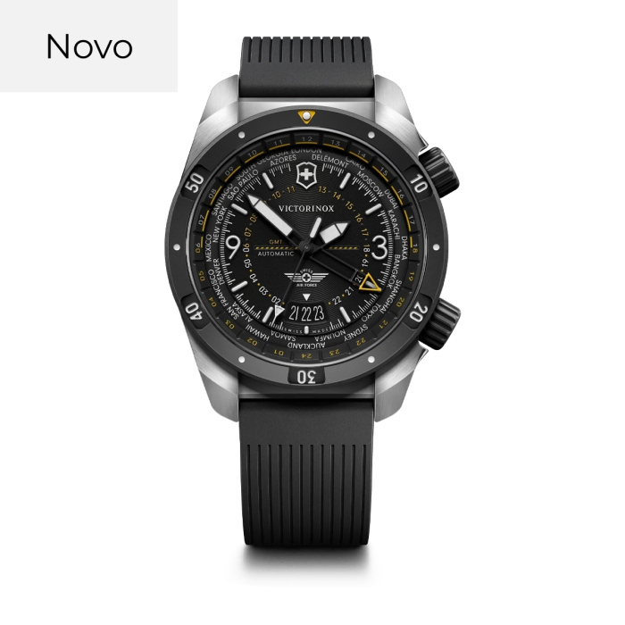 O Air Pro Automatic combina engenharia suíça de alta precisão com design robusto para múltiplos fusos-horários.